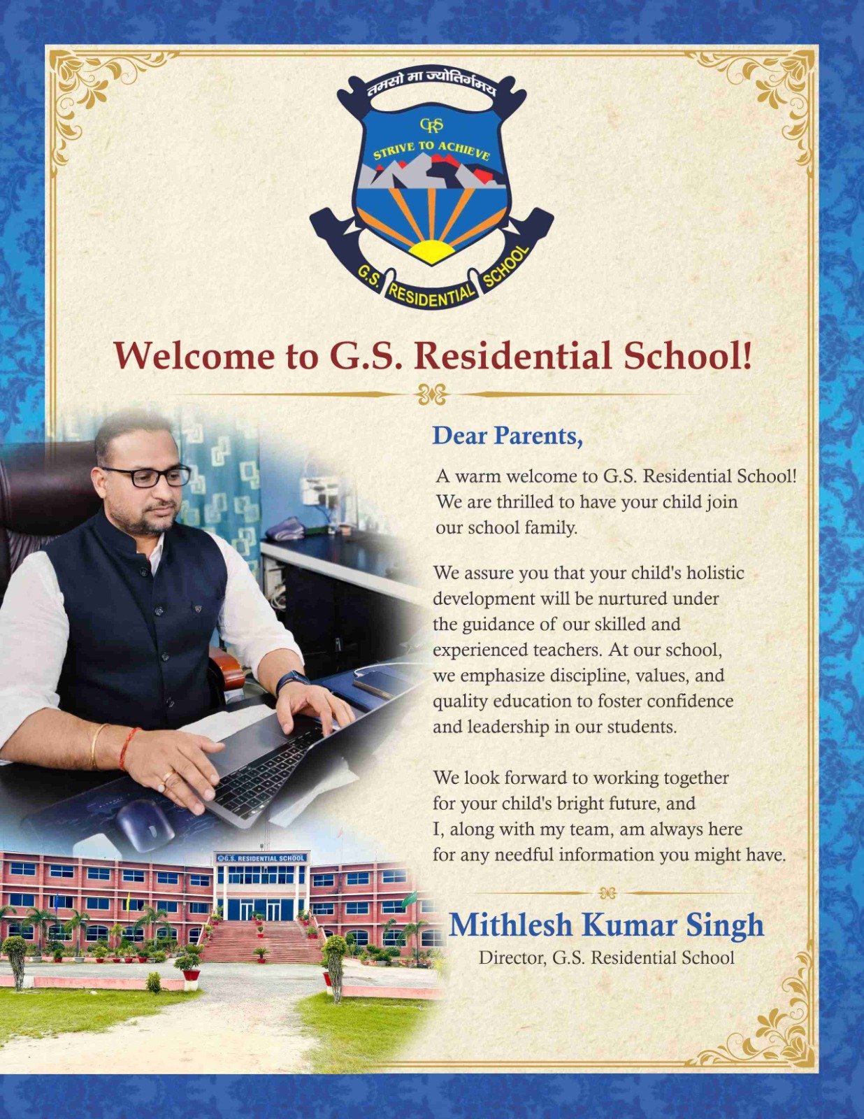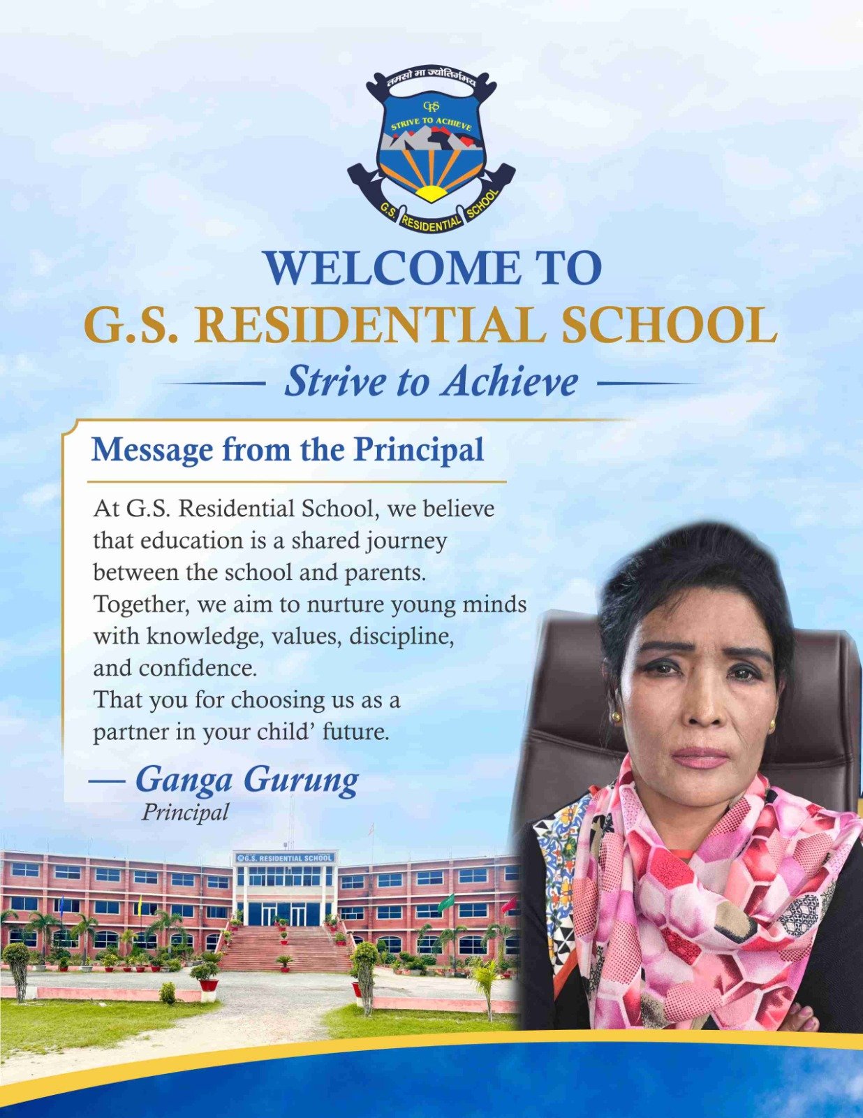 - At G.S. Residential School, our aim is to nurture responsible, knowledgeable, and confident individuals who will contribute positively to society and the nation.